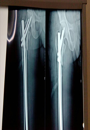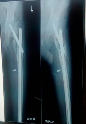 Implant failure with nonunion Done Outside treated by PFN with BG